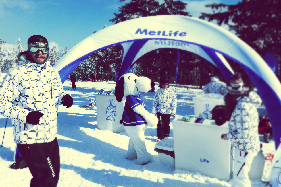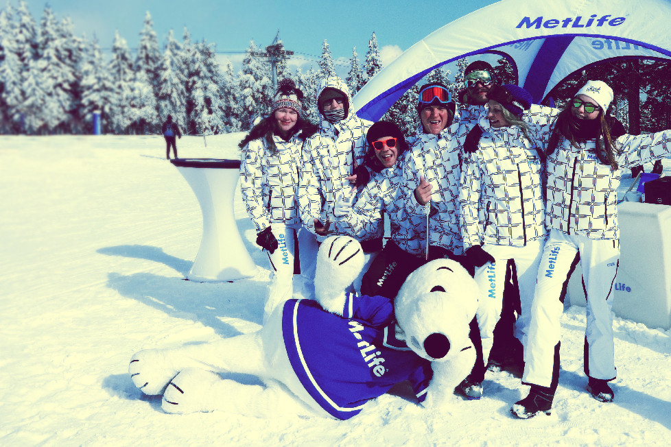 We get along pretty well with our friend Snoopy. Complete branding for the Sweet and Ski Metlife tour was created in our HUB for the Metlife insurance company. Tent, deck charis, fat boys, coffee cups, ski jackets, hats, car stickers were part of the branding …. The new Sweet and Ski logo along with unified visuals were used on posters and leaflets of the tour. We cannot wait for the upcoming tour….