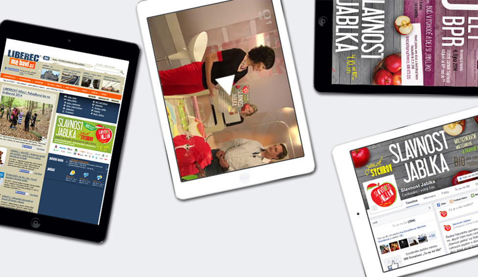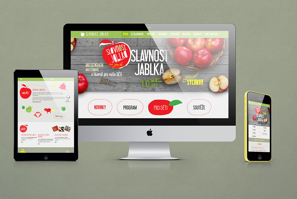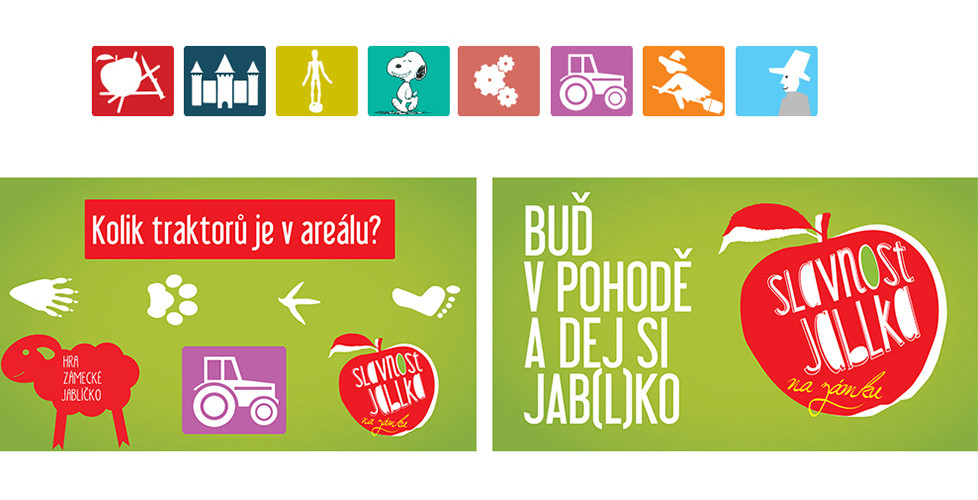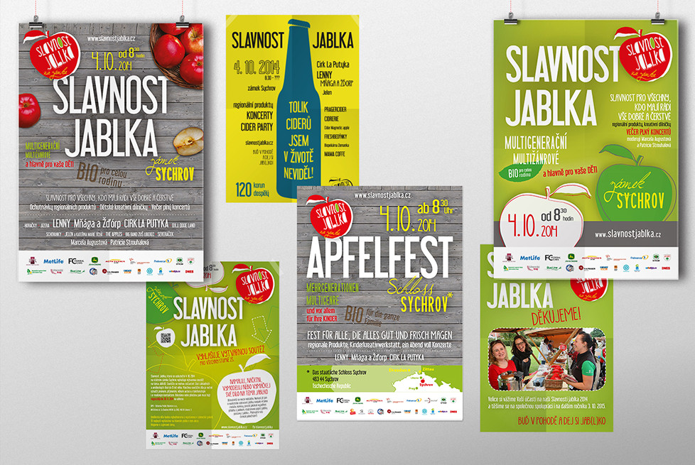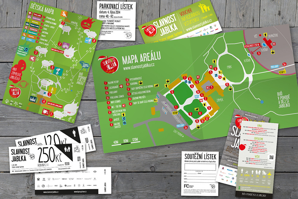 All visuals from scratch were created for the public project Apple Feast – logo, web site, posters, leaflets, navigation, program and bag. LCD projection was also made in our kitchen. www.slavnostjablka.cz