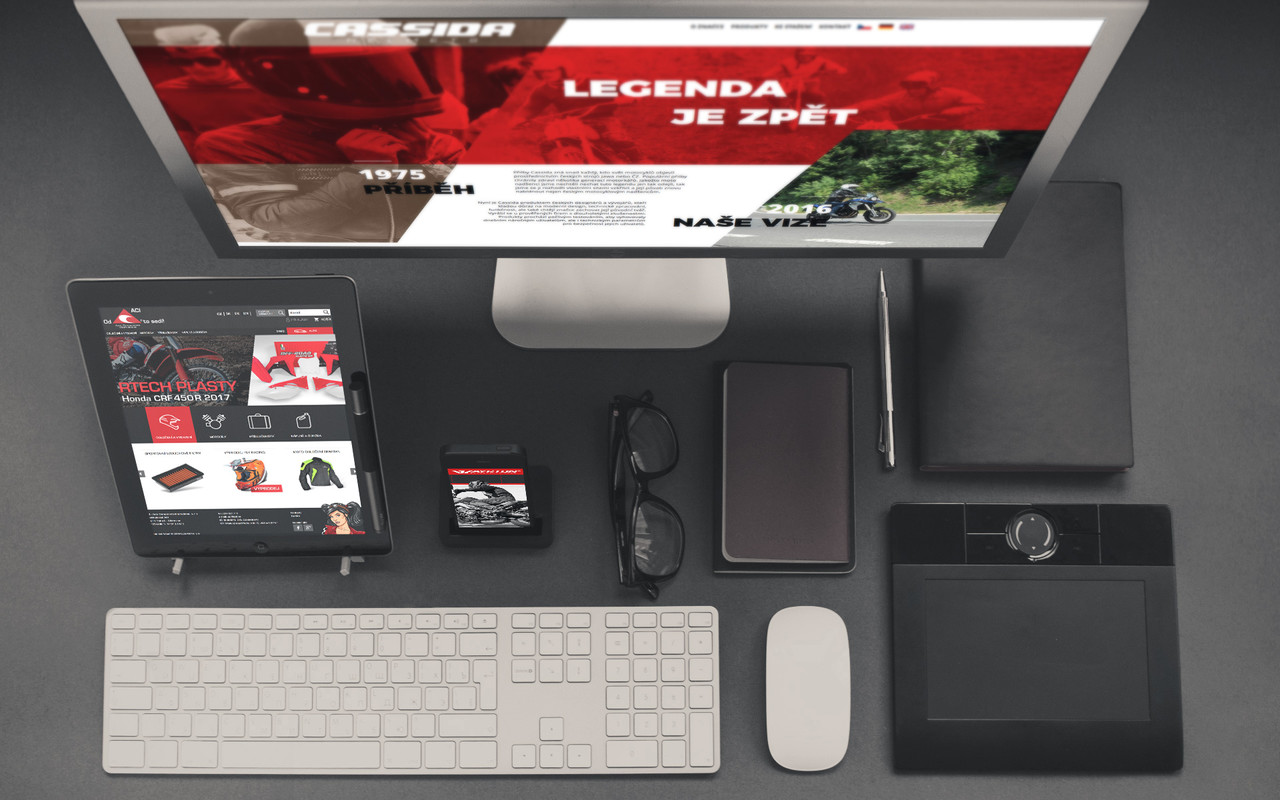 Začali jsme bezpečně, stránkou pro znovuvzkříšenou českou značku Cassida Helmets. Ta vyrábí helmy pro závodníky na dvou (ale i více) kolech. Helmy našich otců v novém, závan nostalgie. Přesně to jsme stránce Cassidy vtiskli. A když už jsme u té moto výbavy, rovnou jsme se vrhli na web pro Ayrton Motorcycle Gear. Ayrton mají na starosti motocykloví nadšenci, kteří vyvíjejí a vymýšlejí produkty tak, aby vyhovovali motorkářským potřebám. Léta praxe (a odříkání) a zkušeností stojí za tím, že opravdu vědí, jak to dělat. Stejně jako my. A tak jsme jim se stejným nadšením vytvořili internetový domov.